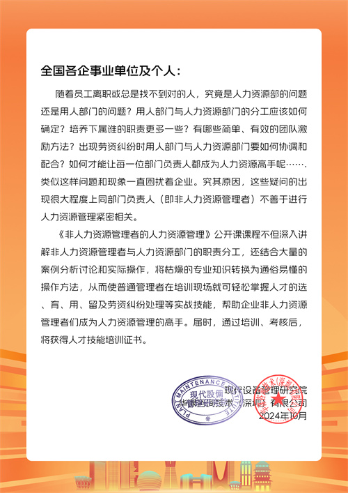 首頁 > 新聞中心>公司動態>11月20-21日在深圳開班!《非人力資源管理者的人力資源管理》提升班 邀您來參加!!