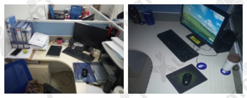 辦公桌定置標識,去除不要物,干凈整潔,便于尋找物品,提高效率。