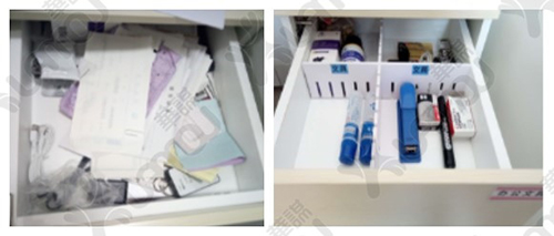 抽屜內物品雜亂無章,不易尋找需要的物品。