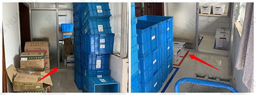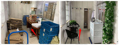改善前 生活區對方大量的紙箱和發藥框,生活區與工作區域未合理分區