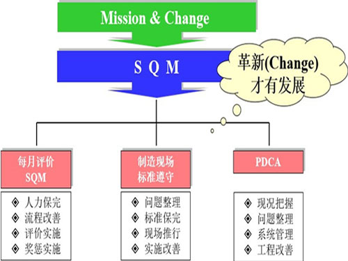 減少品質波動建立標準作業書的作業,重點管理點管理,基本遵守,工序條件管理,計量及測量器的可信度確保等體系,對工程能力進行改善,保持產品品質一致。