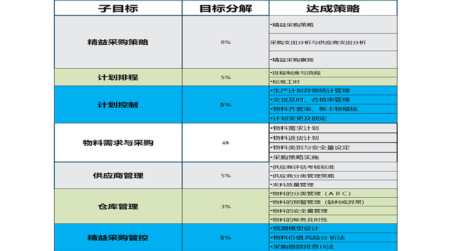 - 對于大多數企業,采購成本占總成本中的60-70%,在JIT需求模式下,如何確保資金利用率、成本降低率、準時交付率等采購目標,需要構建“精益采購”模式來實現。