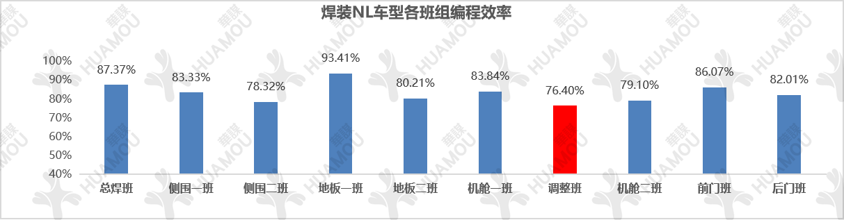 某汽車公司焊裝線,改善前,產線編程效率為76.4%