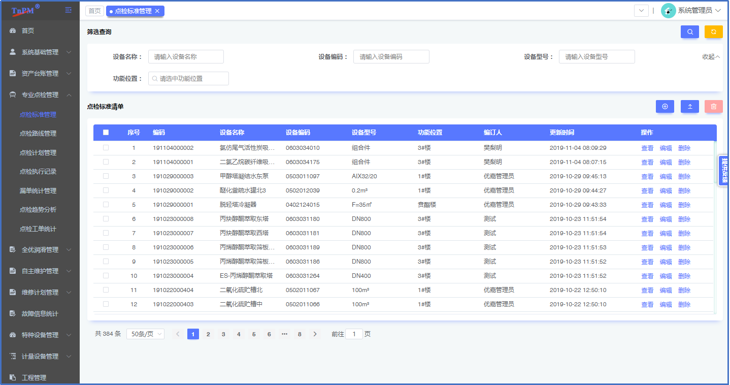 Ø 建立規(guī)范的巡檢標(biāo)準(zhǔn)、計劃、流程,實(shí)時跟蹤,涵蓋重點(diǎn)設(shè)備的點(diǎn)檢路線,掌握巡檢信息,巡檢計劃90%從系統(tǒng)中發(fā)出,員工巡檢漏檢率實(shí)時跟蹤,各巡檢趨勢實(shí)時統(tǒng)計分析,有效管控設(shè)備現(xiàn)場狀況,為設(shè)備保駕護(hù)航。