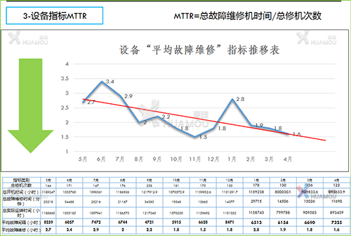 4) 平均故障維修(MTTR)從2.7H降低至1.6h,降低了40.7%;