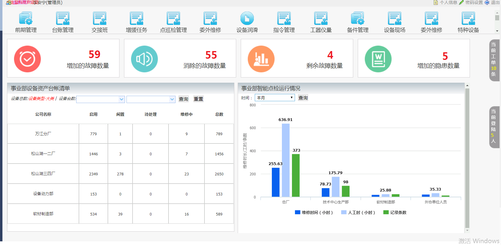 通過(guò)本項(xiàng)目的建設(shè)實(shí)施,系統(tǒng)實(shí)現(xiàn)了生益科技設(shè)備臺(tái)賬、維修管理、故障管理、設(shè)備保養(yǎng)、點(diǎn)巡檢管理、特種設(shè)備管理、備件管理、報(bào)表統(tǒng)計(jì)等功能。