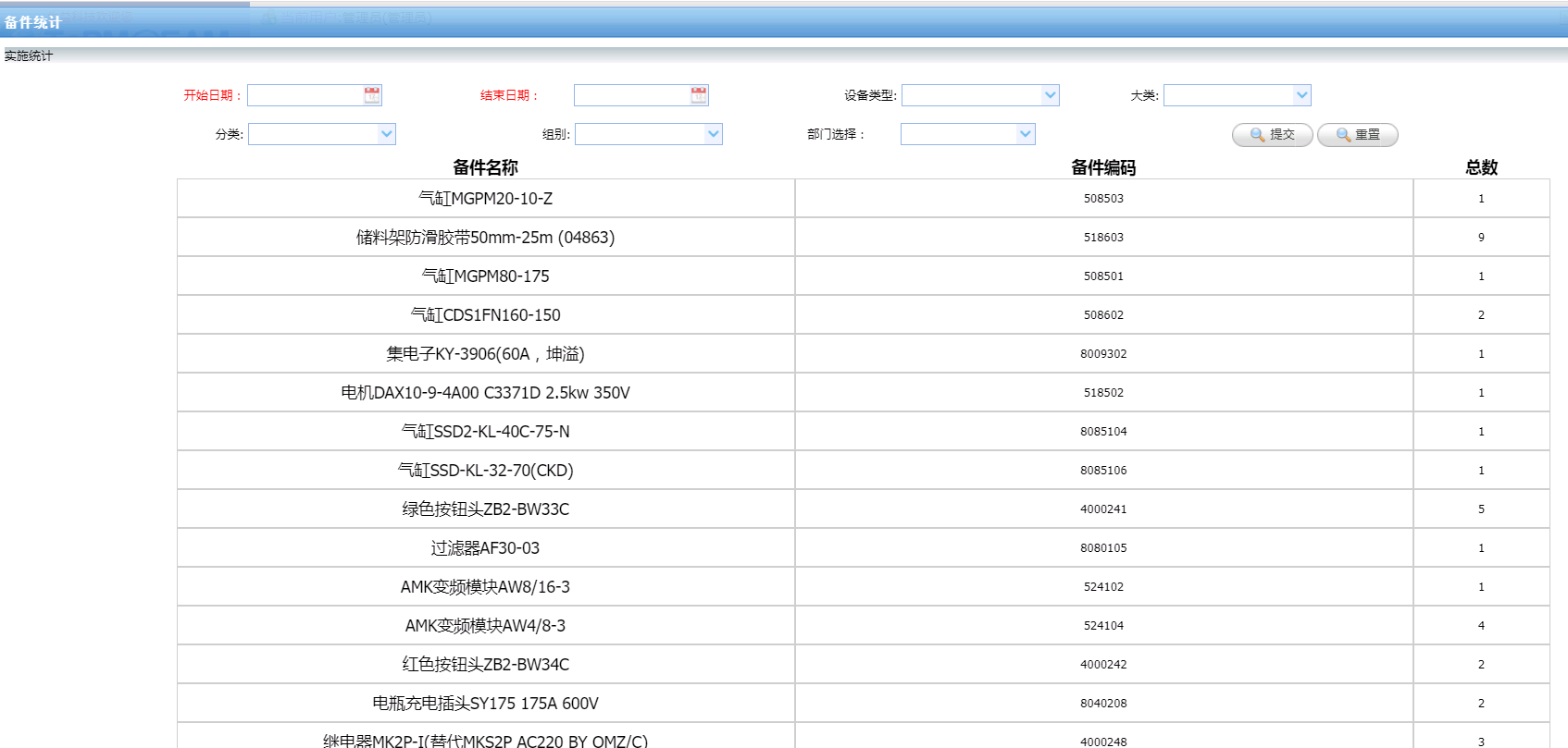 圖5備件統(tǒng)計(jì)表