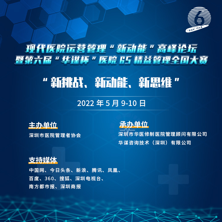 鑒于此,以“新挑戰(zhàn)、新動(dòng)能、新思維”為主題的現(xiàn)代醫(yī)院運(yùn)營管理“新動(dòng)能”高峰論壇暨第六屆“華謀杯”醫(yī)院6S精益管理全國大賽將于2022年5月9-10日舉辦,邀請(qǐng)全國醫(yī)療衛(wèi)生機(jī)構(gòu)參與6S精益管理全國大賽,邀請(qǐng)醫(yī)療衛(wèi)生機(jī)構(gòu)專家與行業(yè)大咖進(jìn)行專題報(bào)告和研討,深入探索高質(zhì)量的發(fā)展路徑,為醫(yī)療機(jī)構(gòu)、醫(yī)療服務(wù)單位等搭建交流平臺(tái),幫助各醫(yī)療機(jī)構(gòu)持續(xù)升級(jí)醫(yī)院管理效率和醫(yī)療服務(wù)質(zhì)量,推動(dòng)健康中國目標(biāo)的實(shí)現(xiàn)。